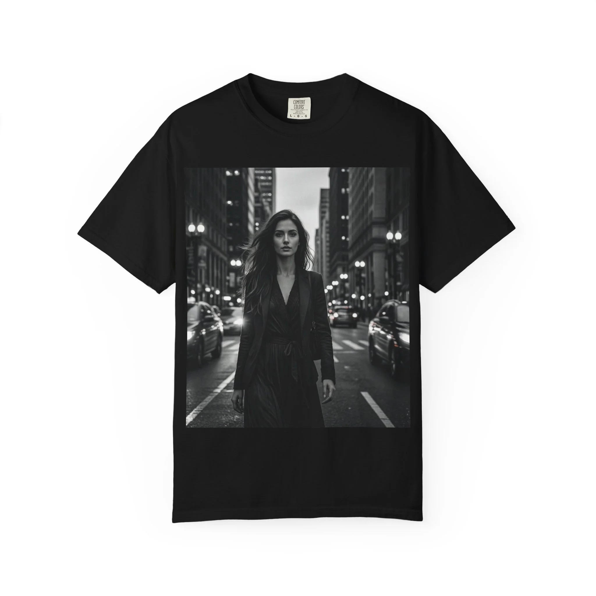 Street Portrait T-Shirt – Noir Urban Woman Photo Tee