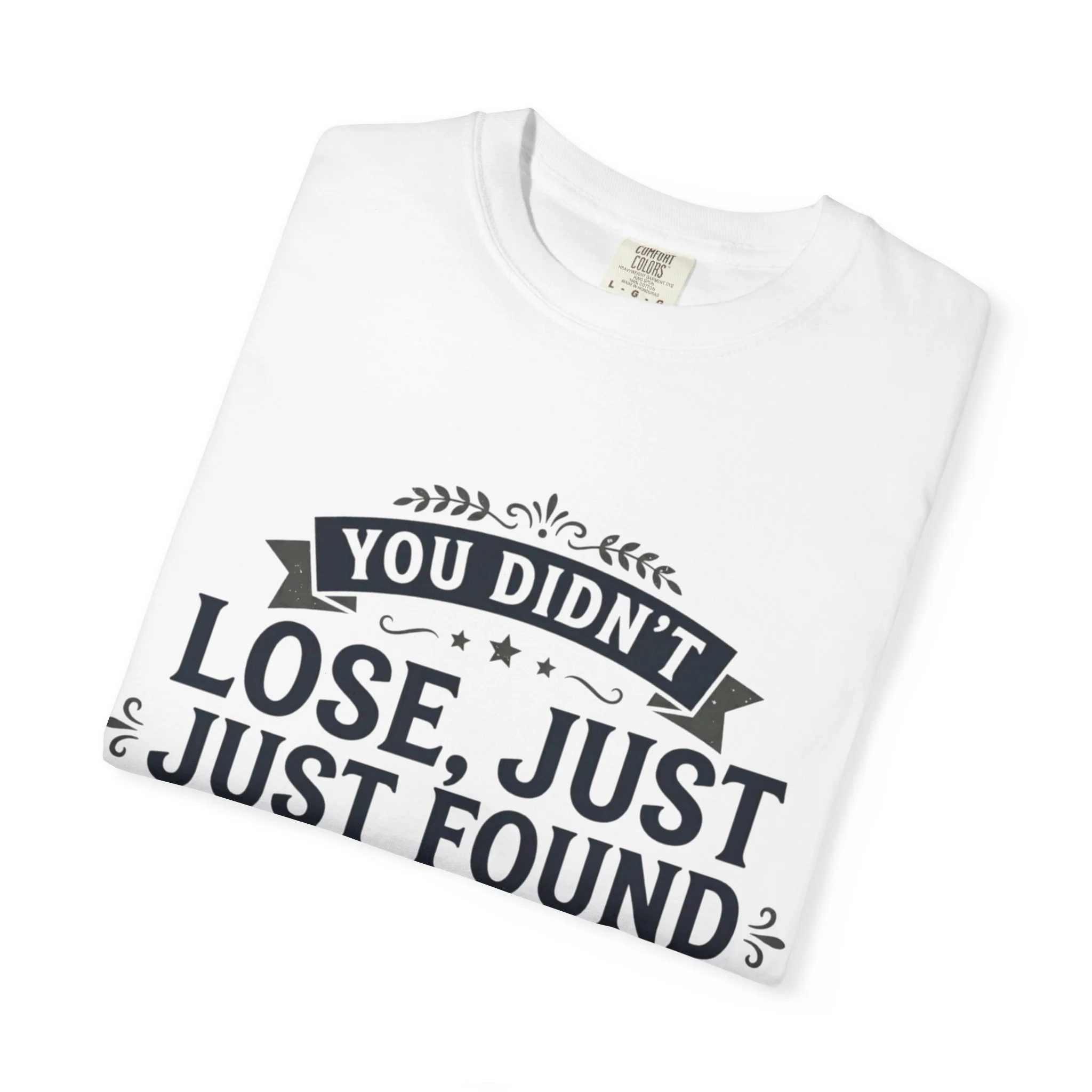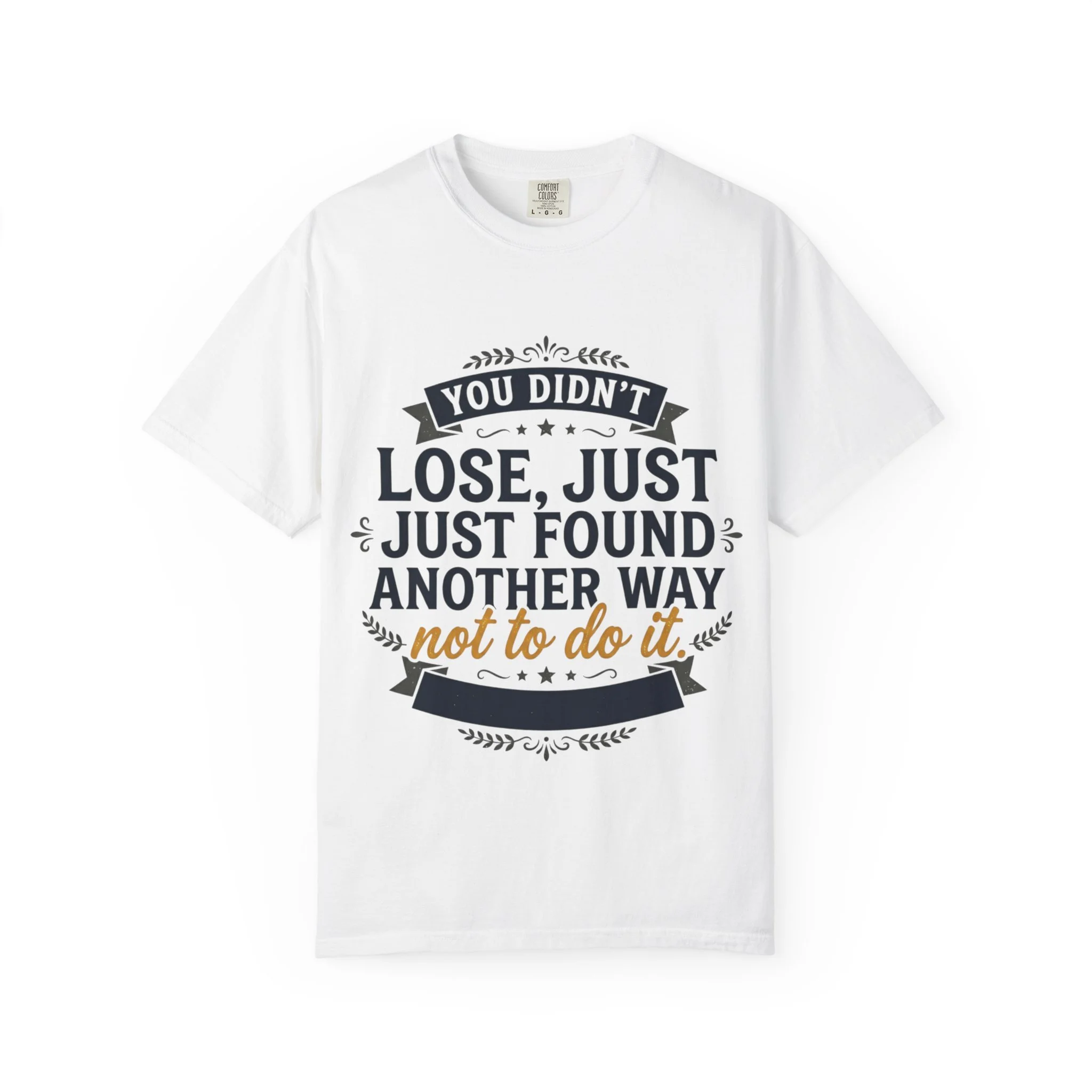 This relaxed-fit tee carries a wry, encouraging message—“You didn’t lose, just found another way not to do it”—printed in vintage-inspired banners and hand-lettered accents. The garment-dyed, heavyweight cotton has a lived-in softness and subtle color depth that makes the shirt feel like an old favorite right away. Wear it when you need a small, wry boost after a setback, or hand it to a friend who appreciates dry humor and honest pep. It layers easily under a flannel or wears alone with jeans for weekend errands, workshops, or low-key gatherings where a little humility and grit fit right in.